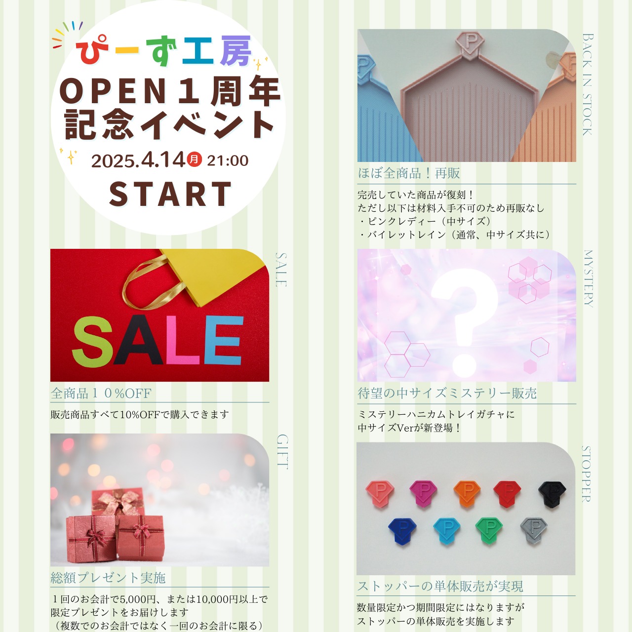 2025年4月にぴーず工房はおかげさまでOPEN1周年を迎えました。