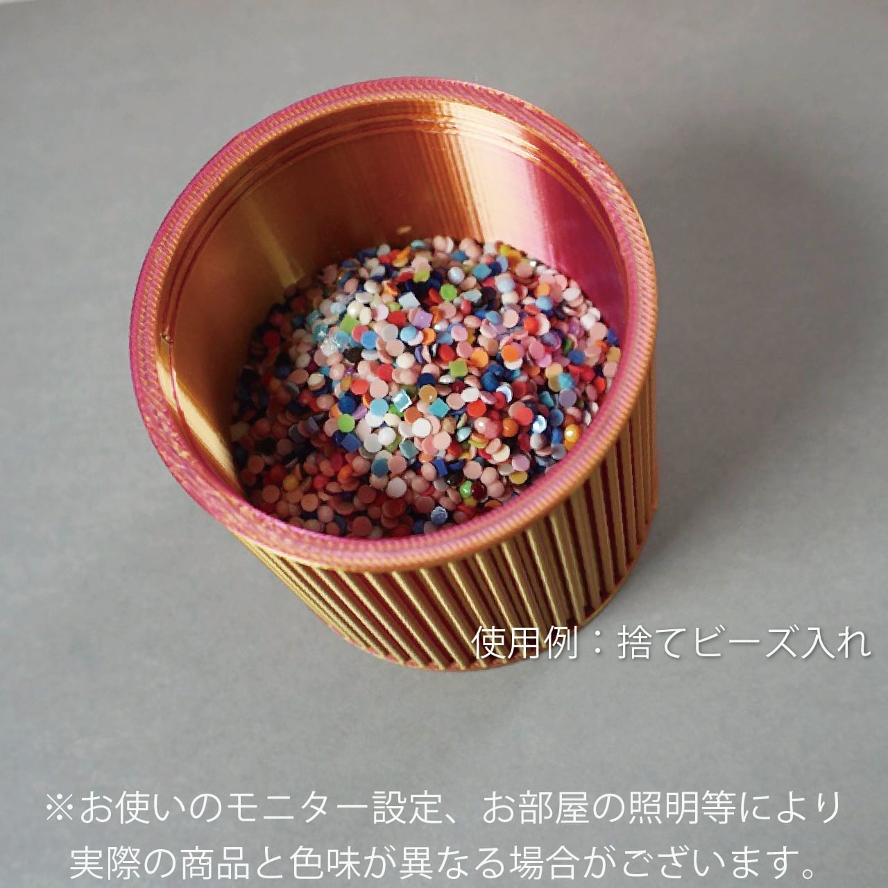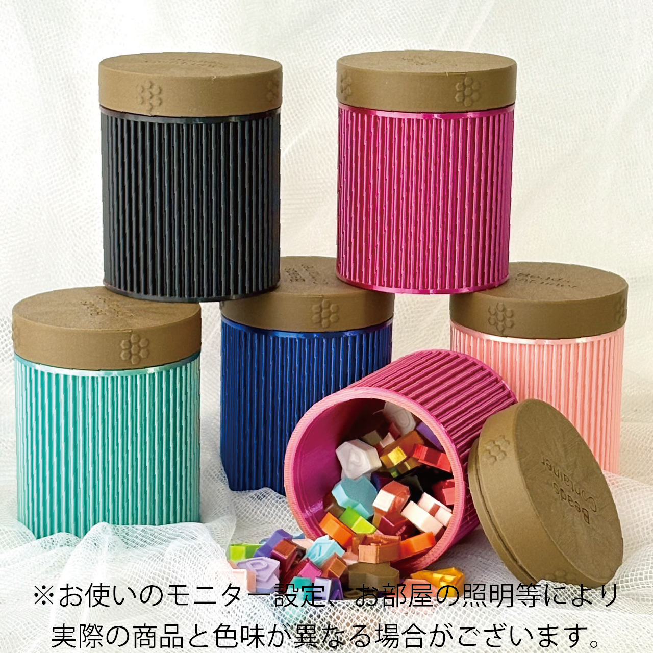 3Dプリンターで作成した捨てビーズ入れ、その名も「ビーズコンテナ」です。